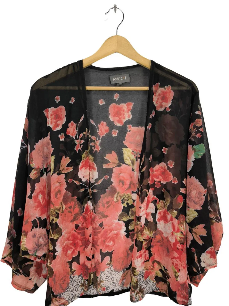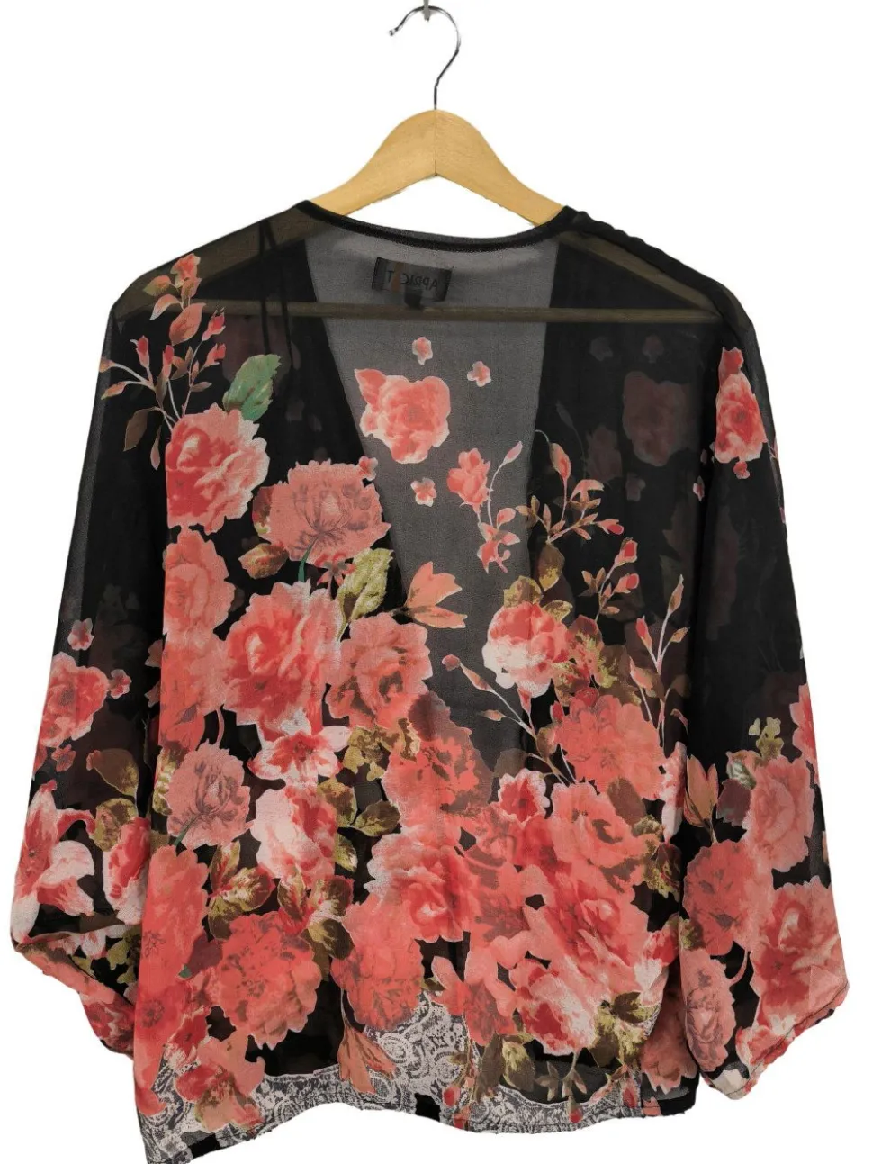 - Bund am Ärmelsaum, ohne Verschluss (wird offen getragen), Allover-Druck, Blumenmuster, Casual-Look, Transparenz-Optik
