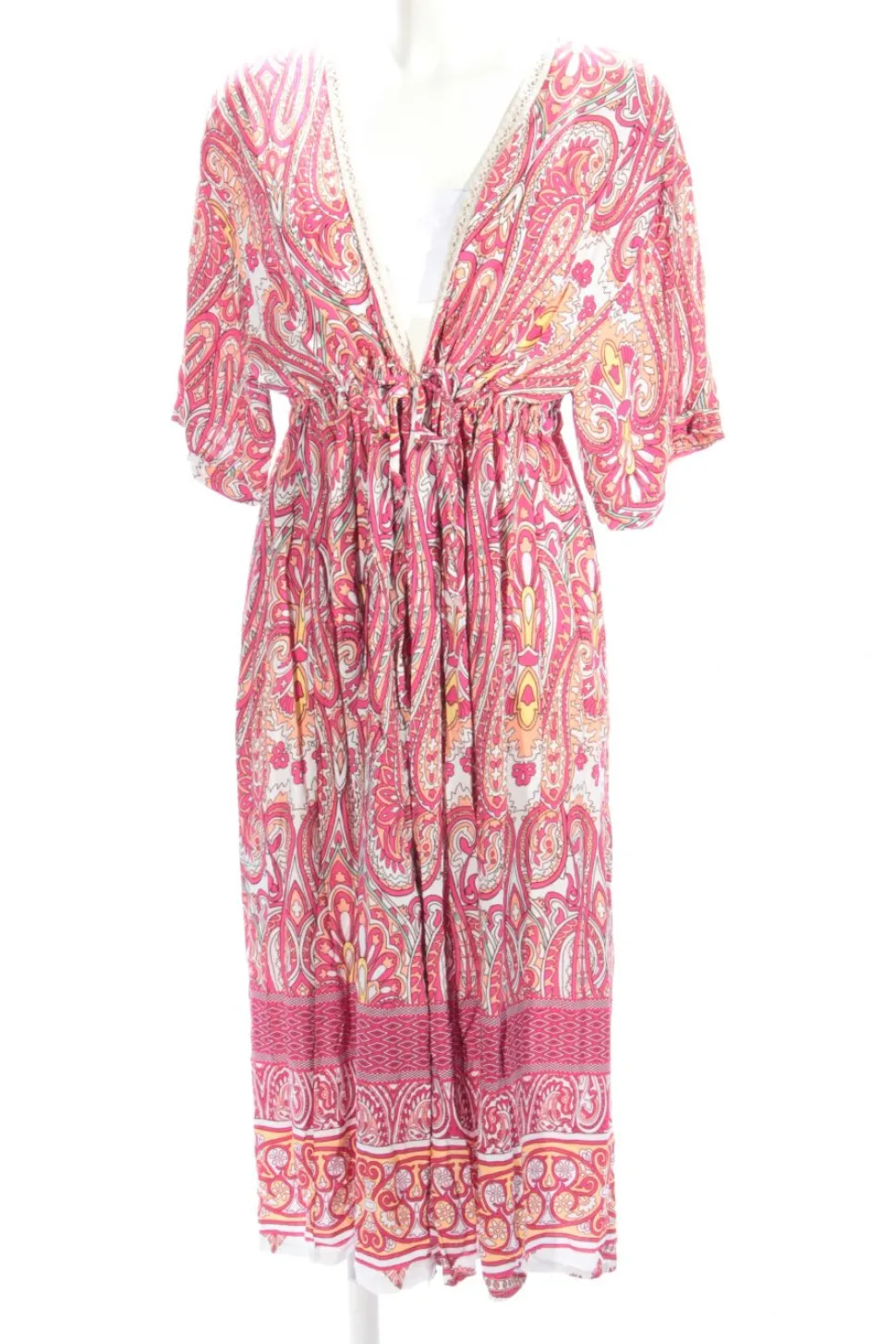 - tiefer V-Ausschnitt, Bund am Ärmelsaum, Knotenverschluss, Allover-Druck, Mustermix, Streifenmuster, Casual-Look, Street-Fashion-Look