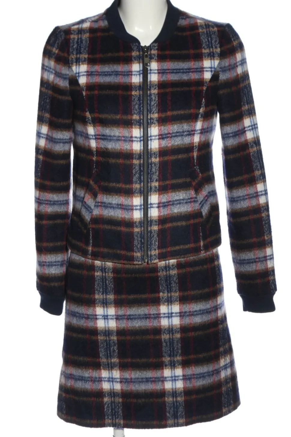 - V-Ausschnitt, Armbündchen, Reißverschluss, Leistentaschen, Allover-Druck, Karomuster, Business-Look, Elegant, klassischer Stil