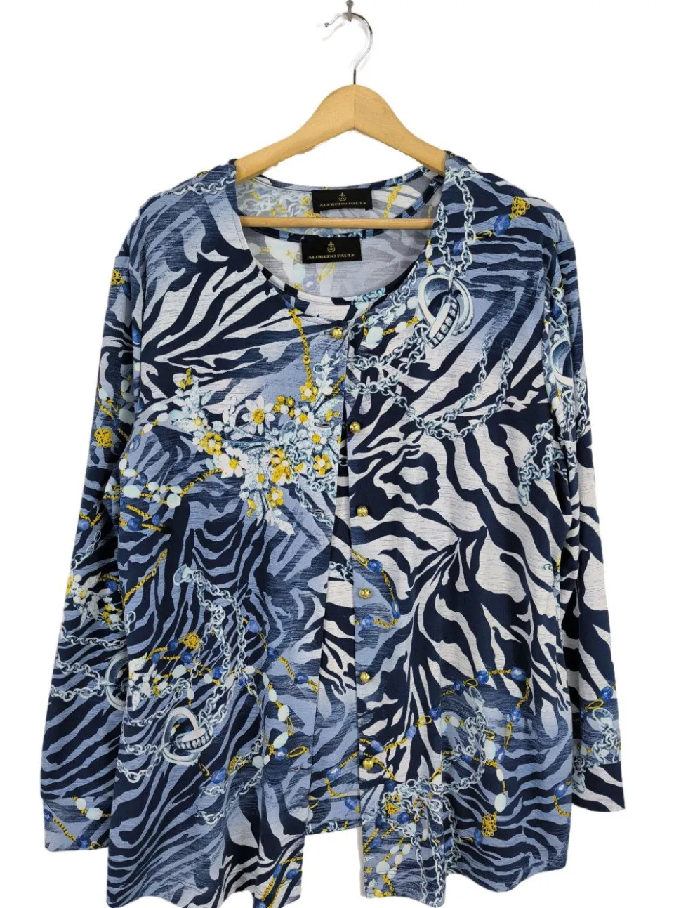 - Alfredo Pauly Strick Twin Set, blau abstraktes Muster