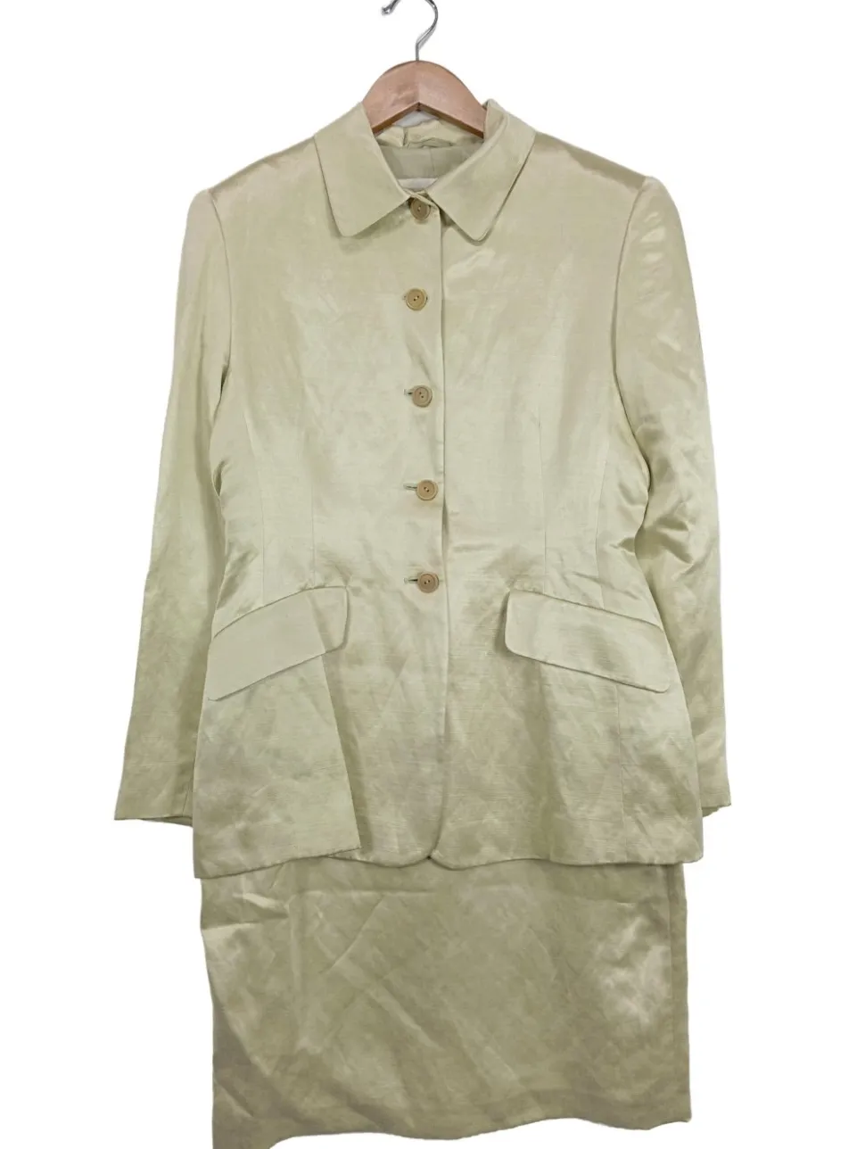 - Knopfleisten-Ausschnitt, Umlegekragen, Bund am Ärmelsaum, Knopfverschluss, Pattentaschen, Casual-Look, Elegant, Glanz-Optik, klassischer Stil