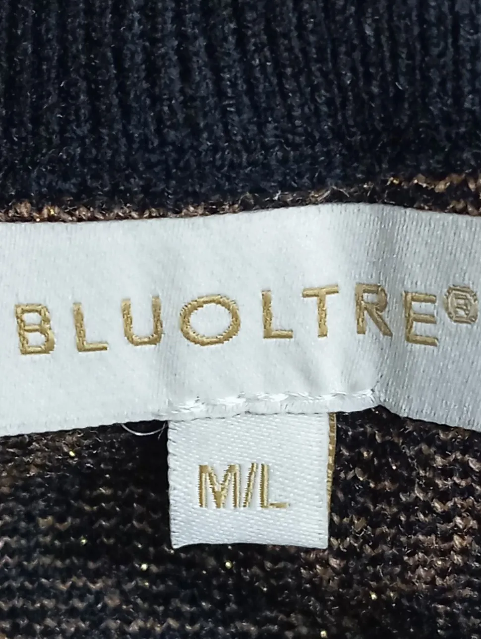 - Bluoltre Strick Twin Set, schwarz-beige Allover-Druck