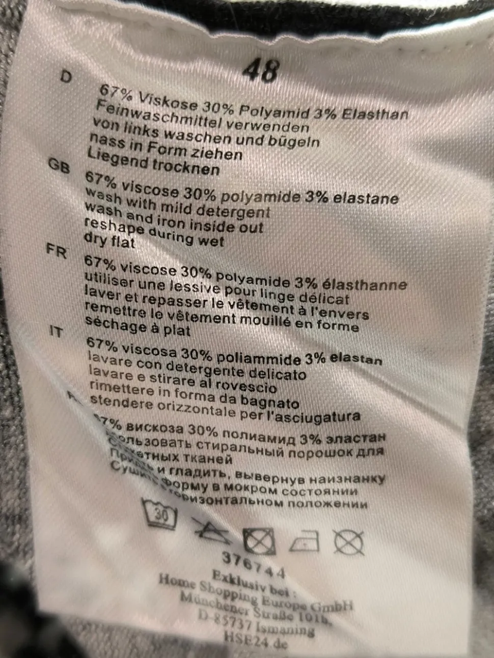 - Außenmaterial: 67% Viskose, 30% Polyamid, 3% Elasthan