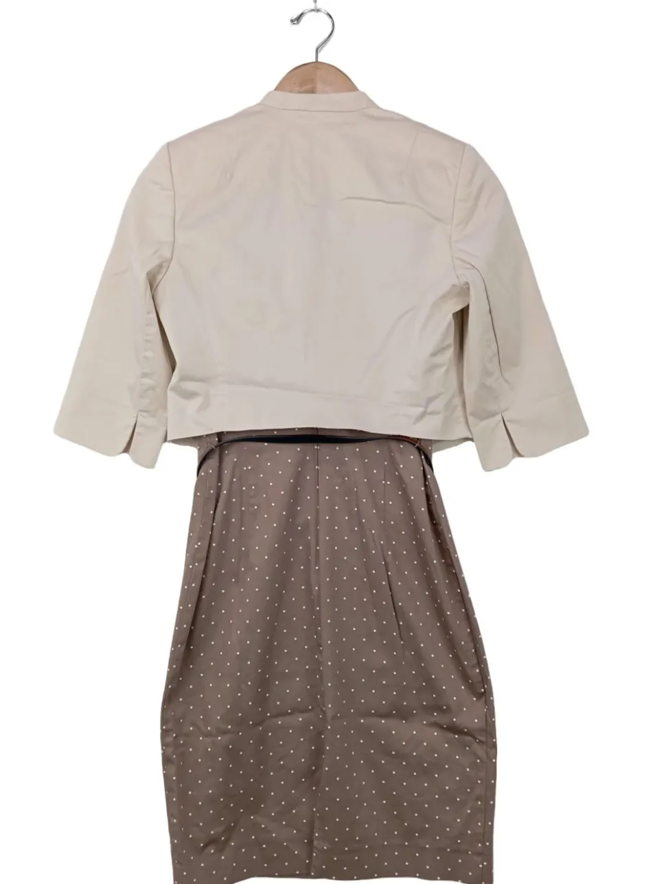 - Comma Strick Twin Set, braun-wollweiß Punktemuster