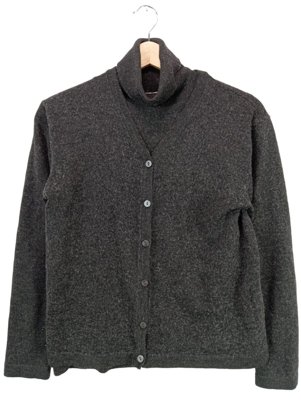 - V-Ausschnitt, Rollkragen, Bund am Ärmelsaum, Knopfverschluss, meliert, Webmuster, Casual-Look, Street-Fashion-Look