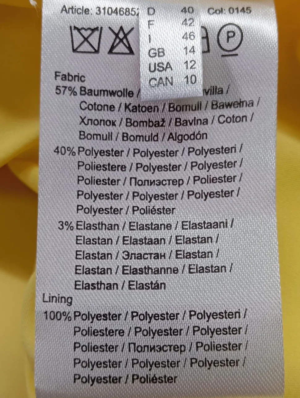 - Außenmaterial: 57% Baumwolle, 40% Polyester, 3% Elasthan