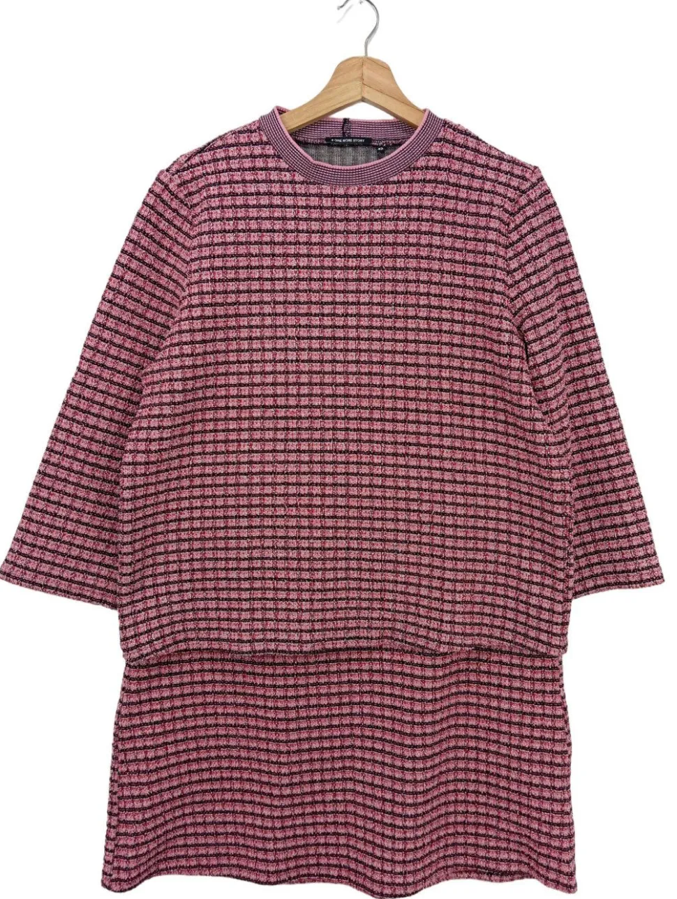 - One More Story Strick Twin Set, Karomuster