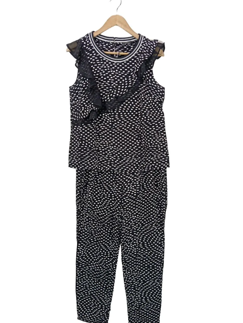 - Comma Strick Twin Set, schwarz-weiß Allover-Druck