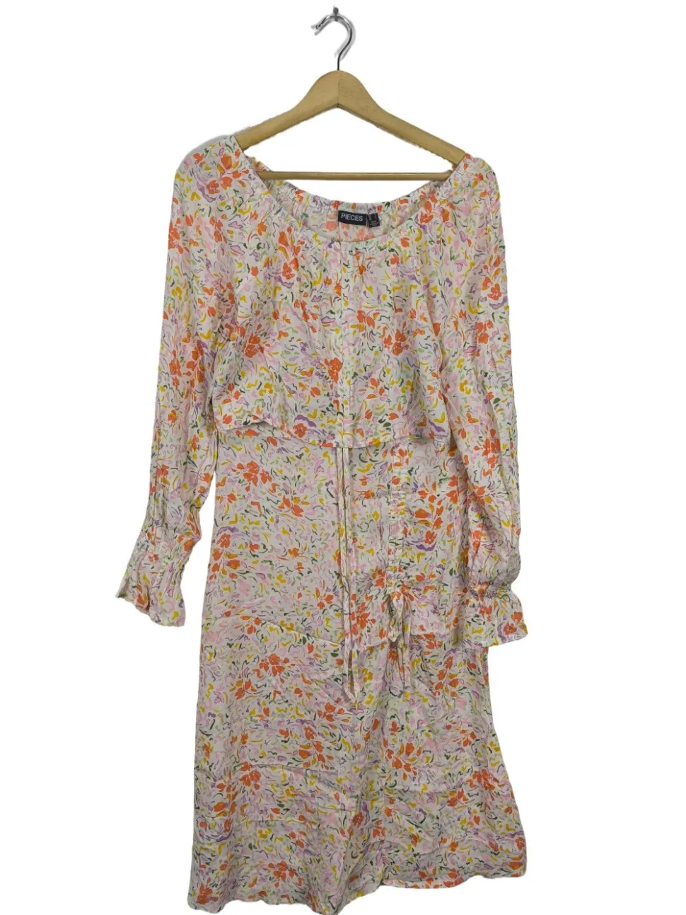 - Pieces Strick Twin Set, hellorange-pink abstraktes Muster