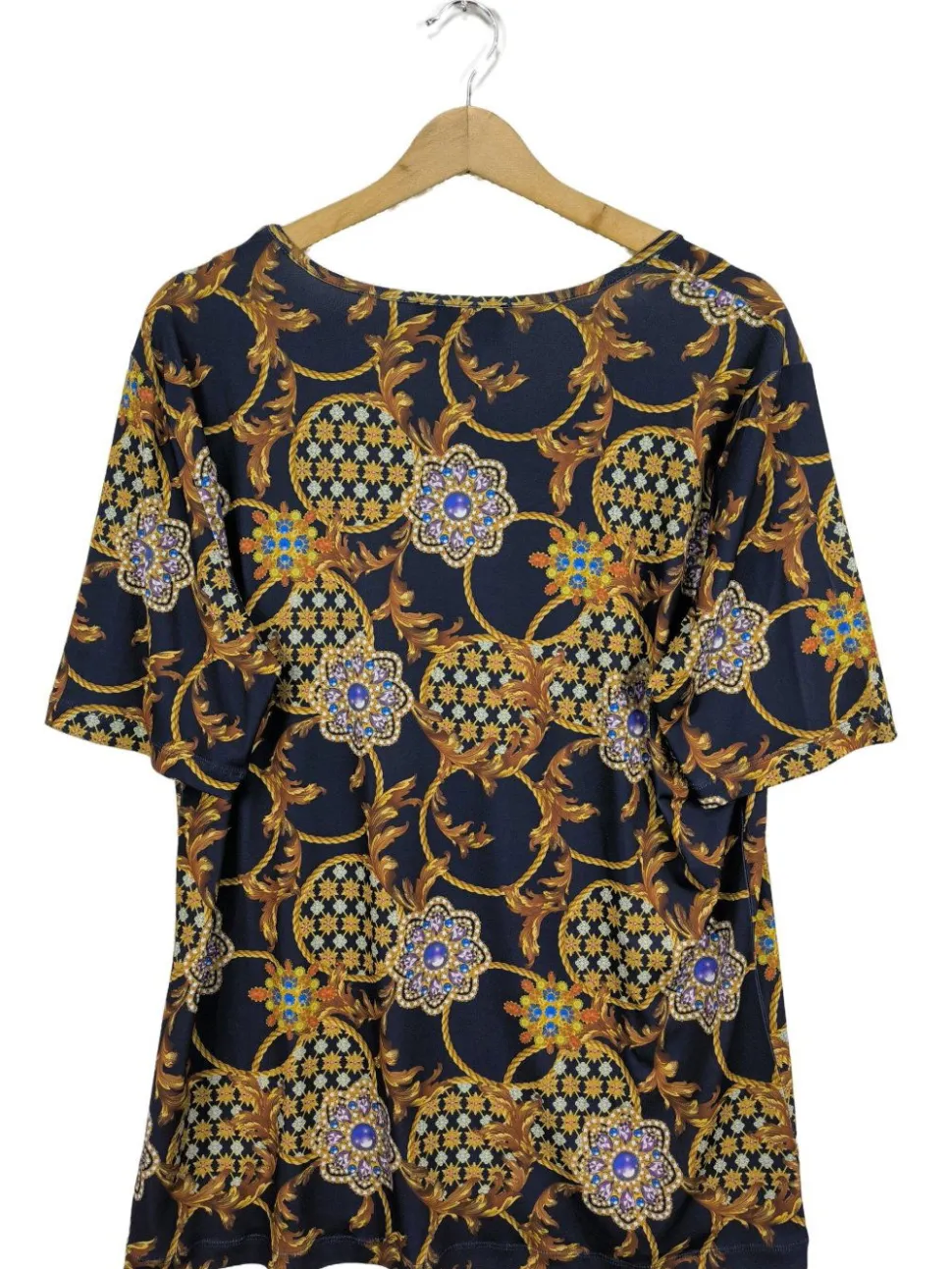 - U-Ausschnitt, Bund am Ärmelsaum, Knopfverschluss, Allover-Druck, Casual-Look, Street-Fashion-Look