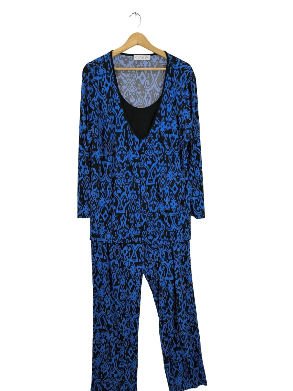 - Couture Line Strick Twin Set, blau-schwarz abstraktes Muster