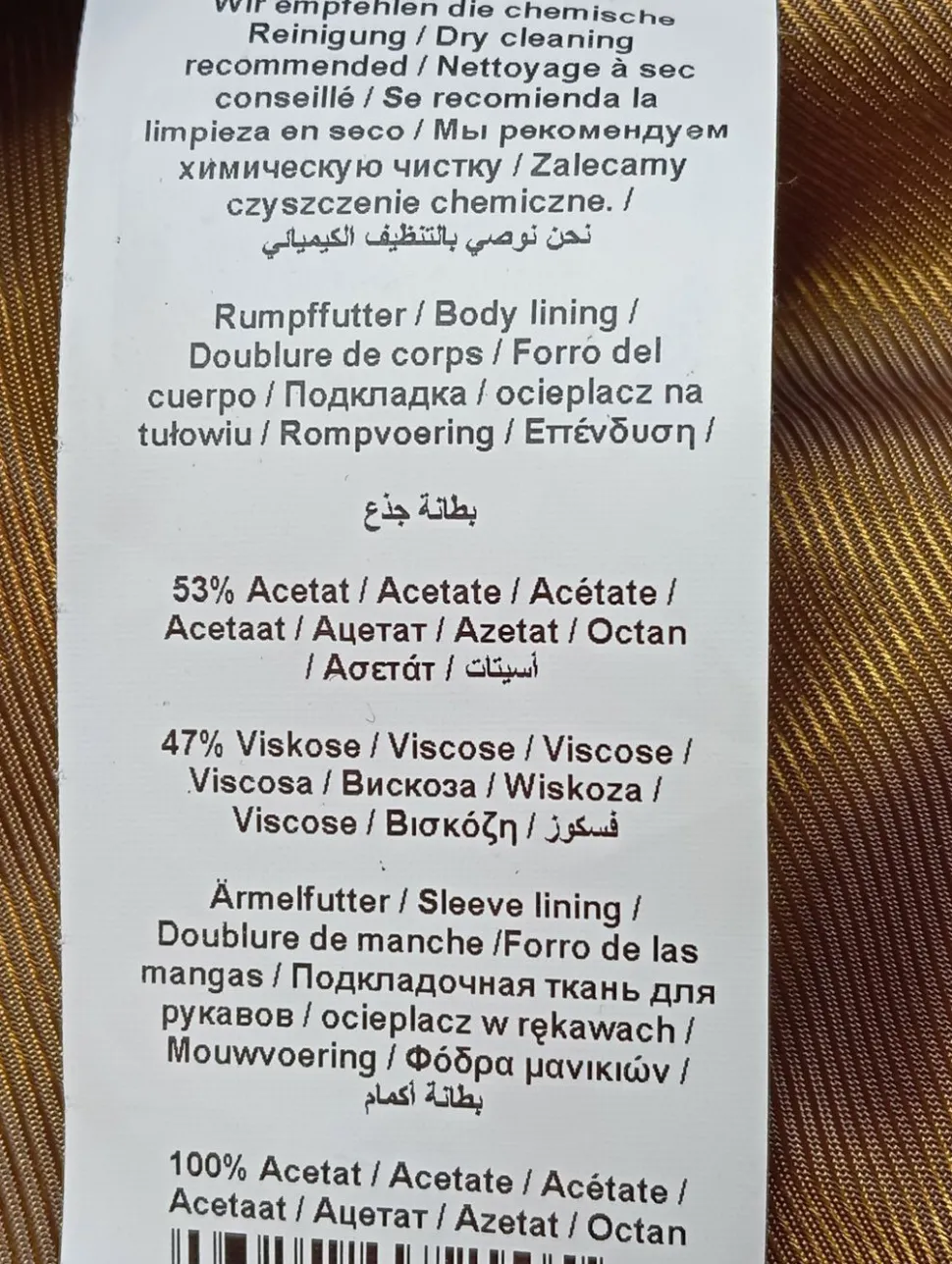 - Außenmaterial: 53% Acetat, 47% Viskose