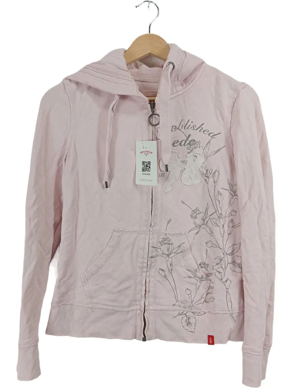 - Akzente: Kapuze, Reißverschluss, Schriftzug
