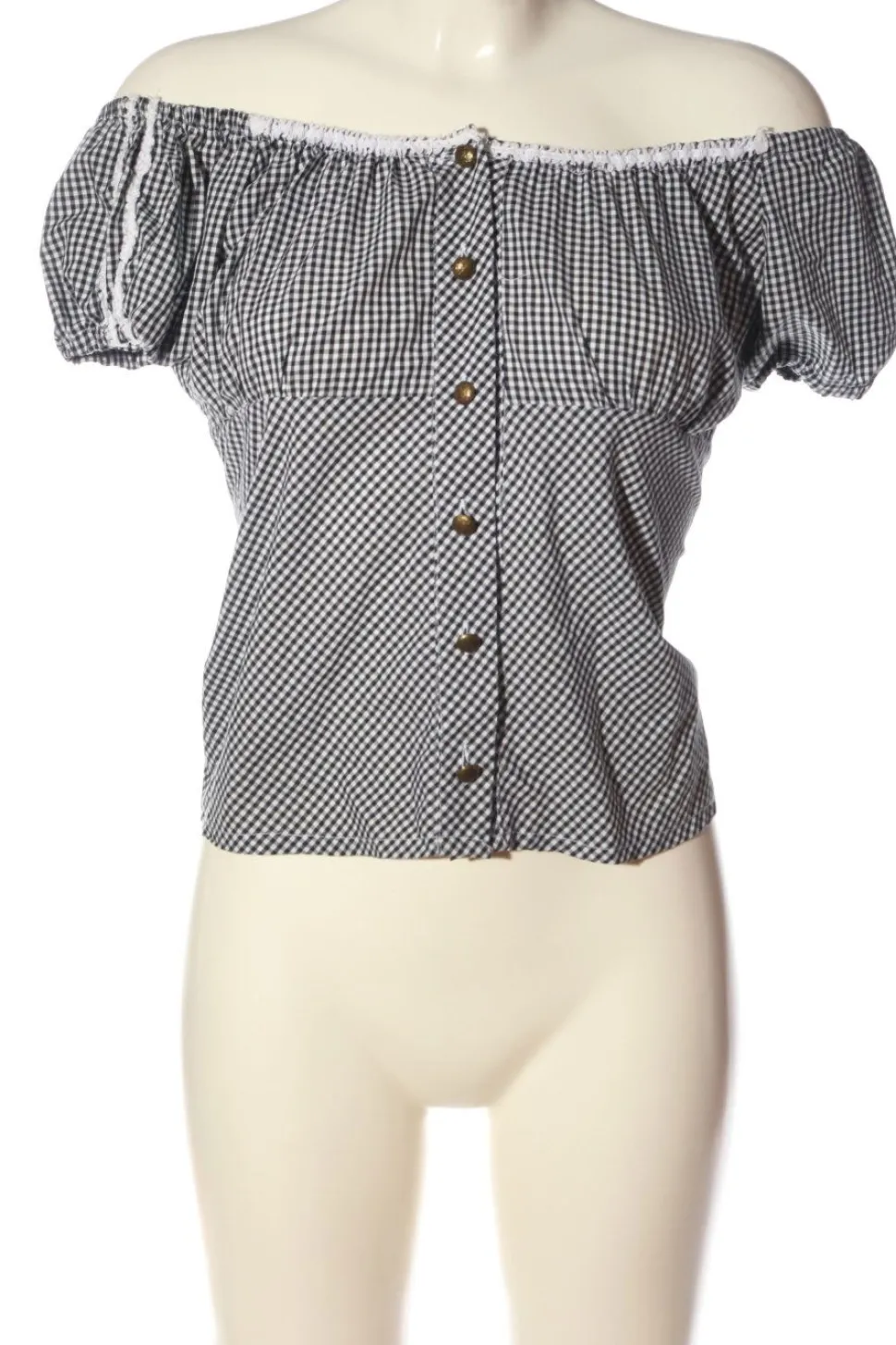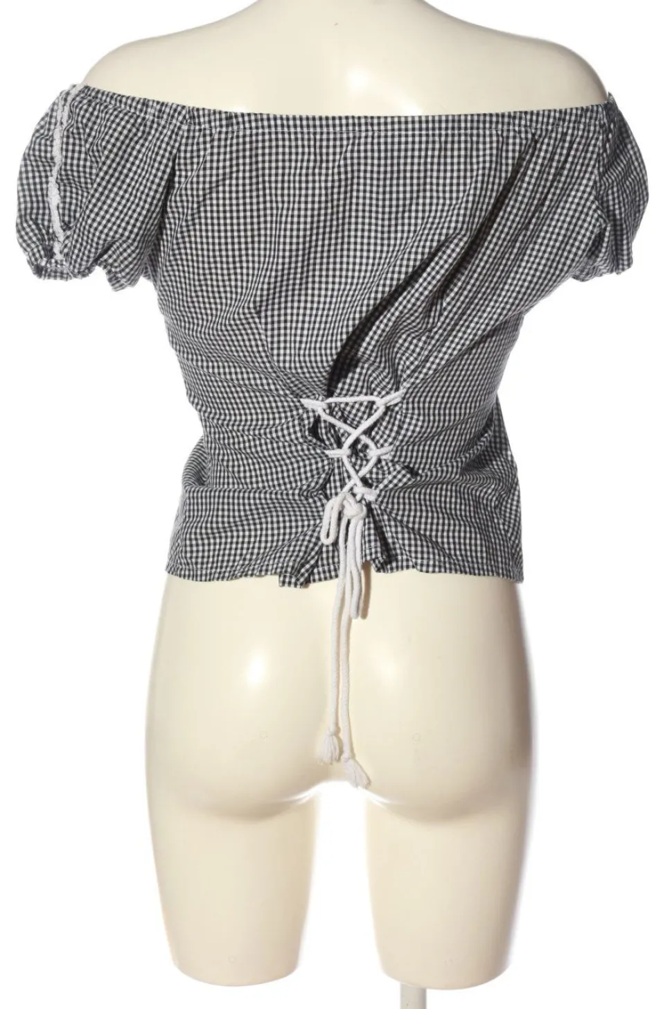 - schulterfrei, Bund am Ärmelsaum, Knopfverschluss, Schnürverschluss, Allover-Druck, Karomuster, Elegant, klassischer Stil