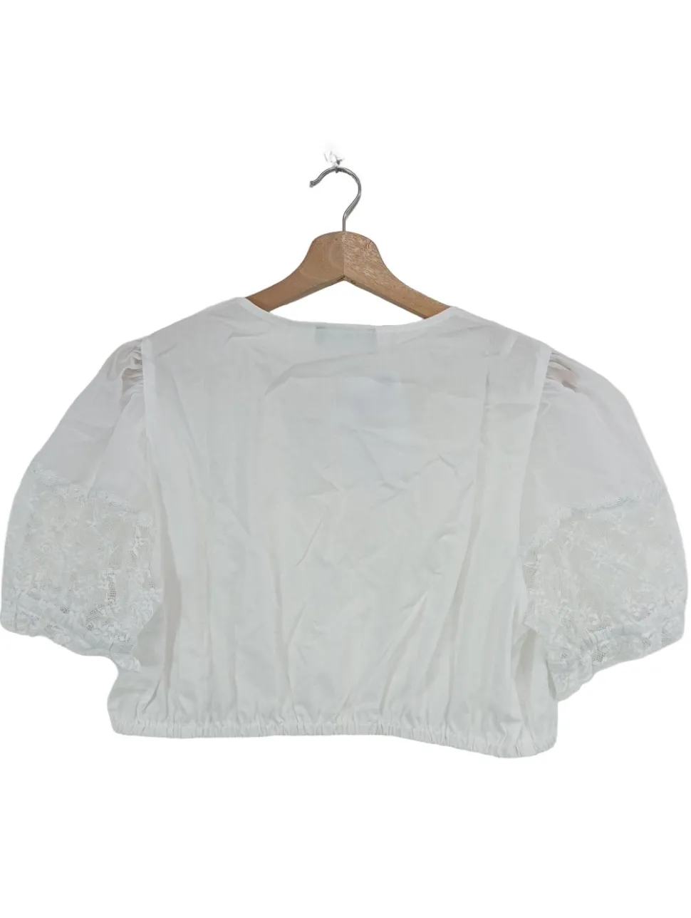 - V-Ausschnitt, Bund am Ärmelsaum, Knopfverschluss, Elegant, Transparenz-Optik