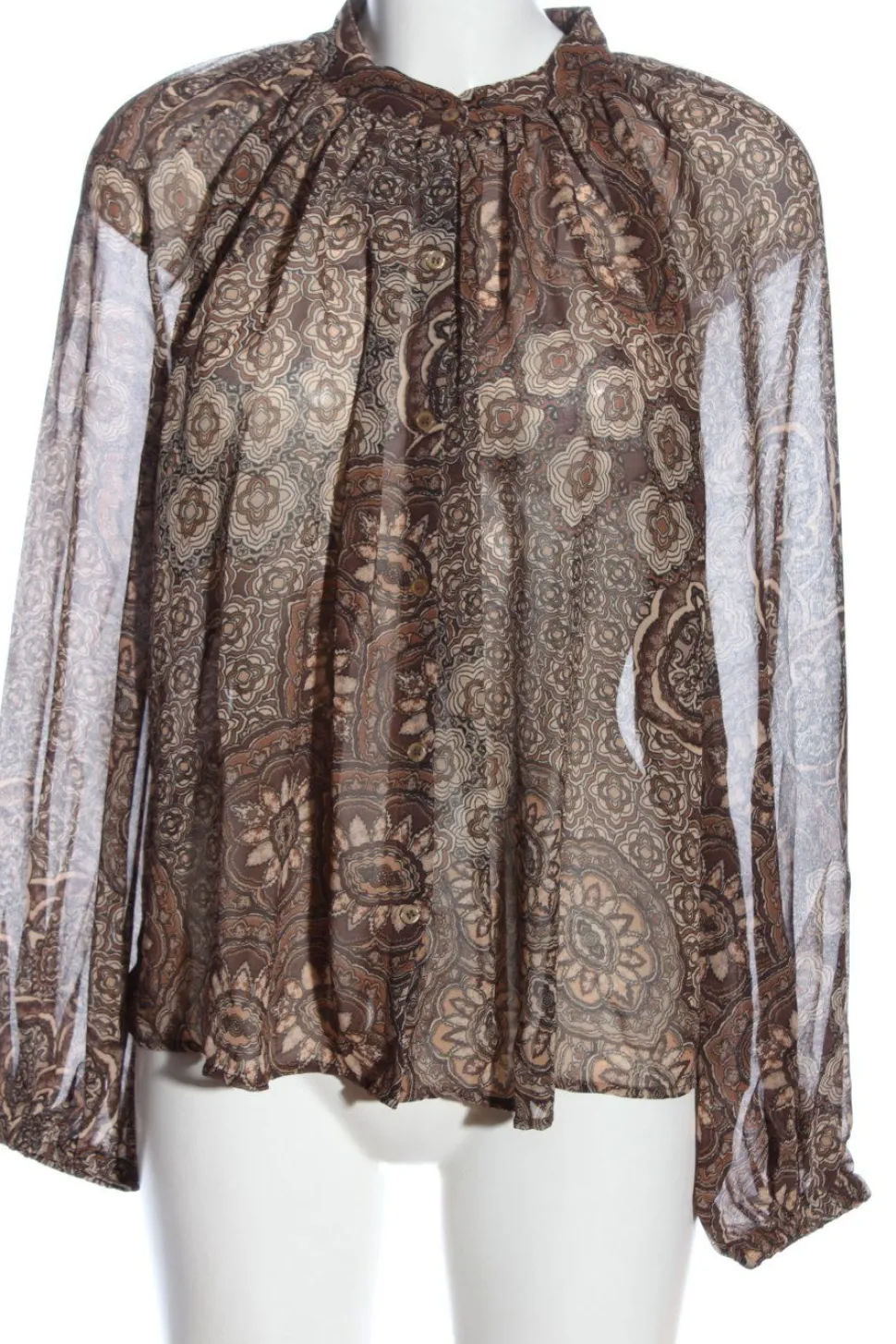 - H&M Transparenz-Bluse, braun Allover-Druck
