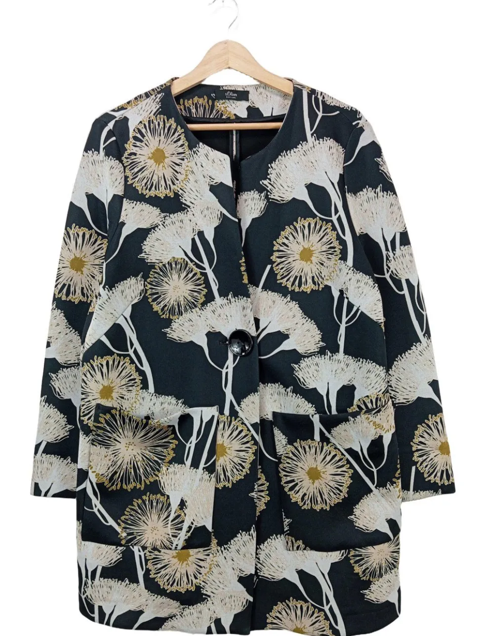 - Rundhalsausschnitt, angeschnittener Kragen, Bund am Ärmelsaum, Knopfverschluss, aufgesetzte Taschen, Motivdruck, Casual-Look, Street-Fashion-Look