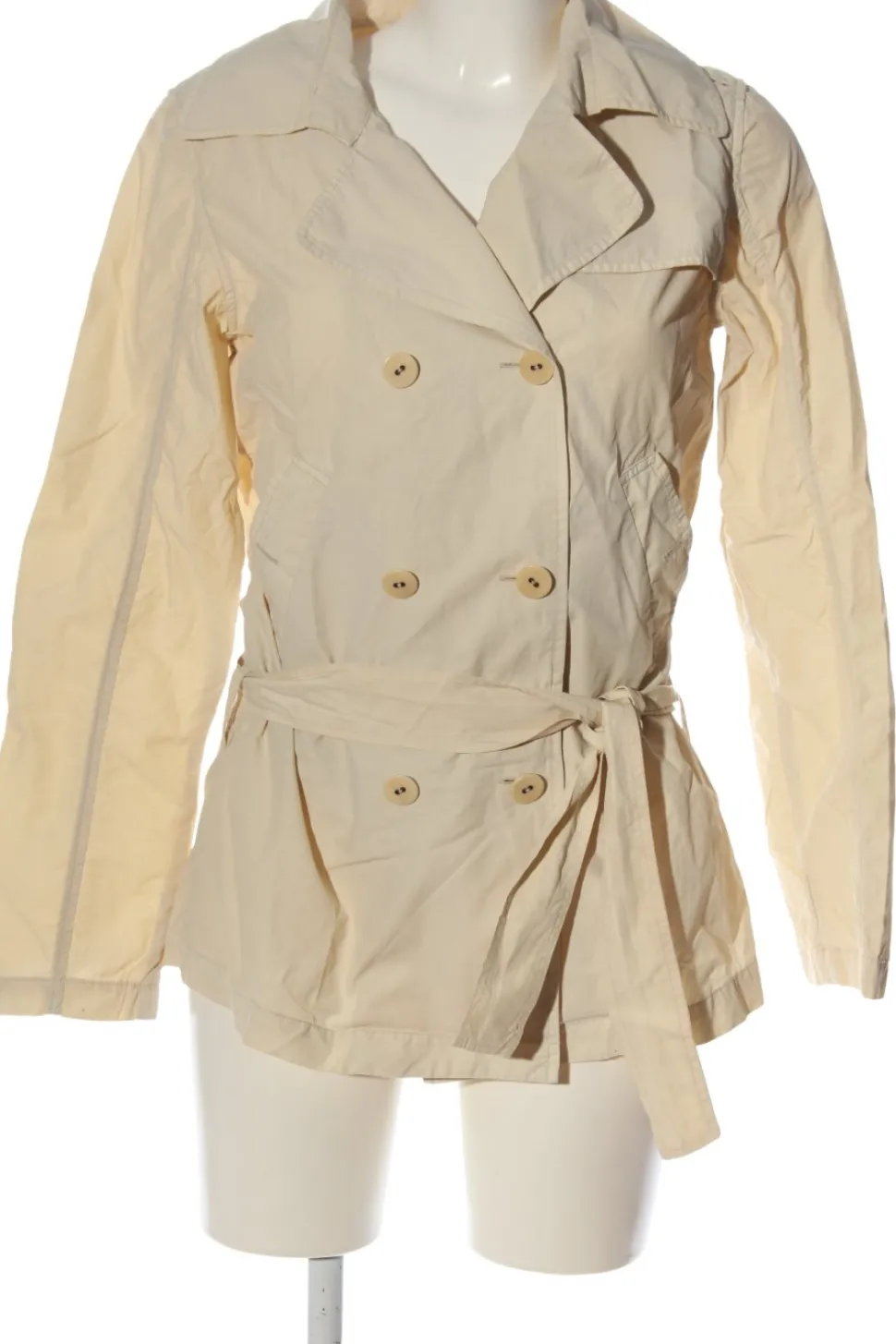 - V-Ausschnitt, Umlegekragen, Bund am Ärmelsaum, doppelreihiger Knopfverschluss, Schleifenverschluss, Eingriffstaschen, Casual-Look, klassischer Stil, Street-Fashion-Look