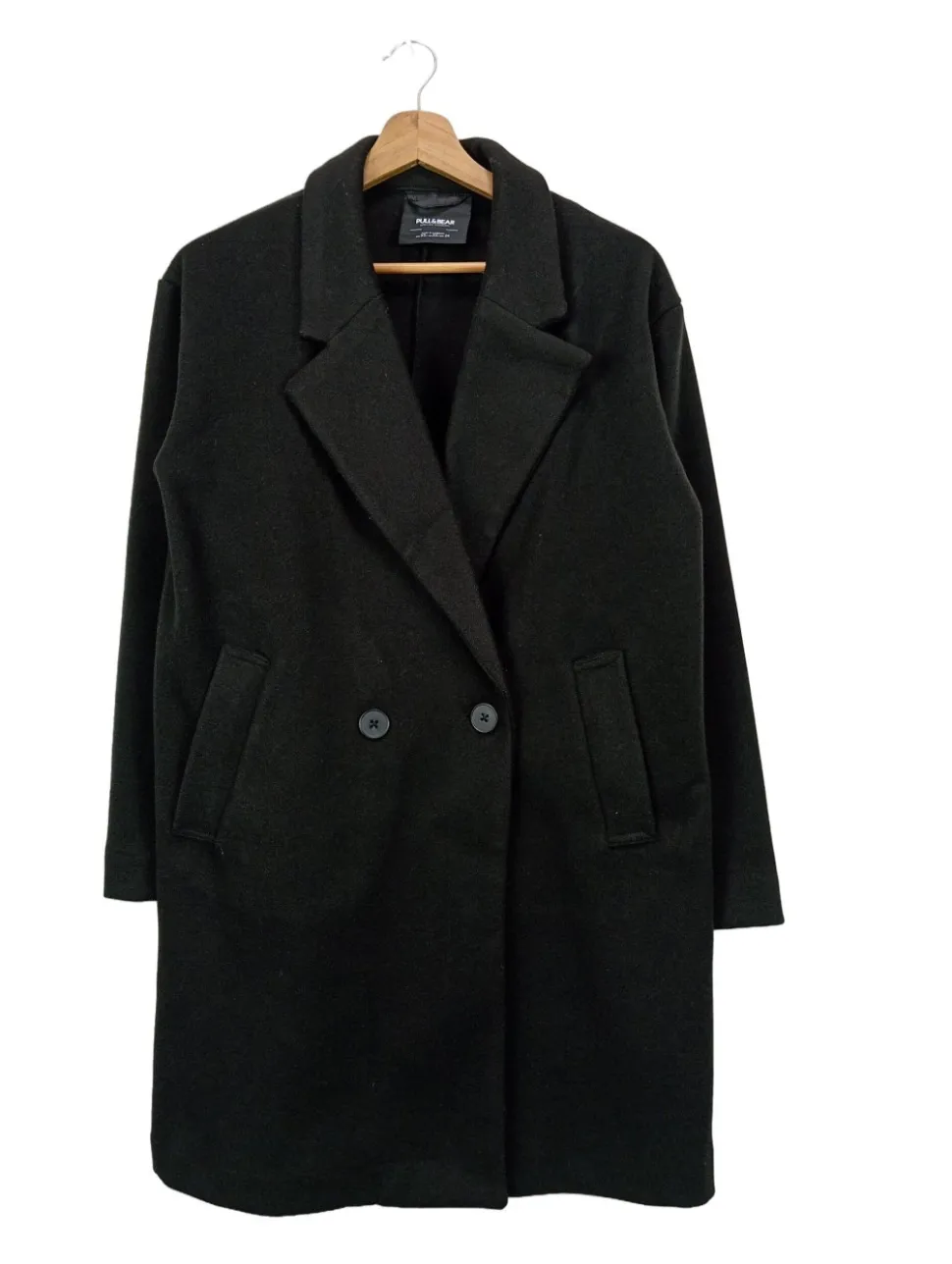 - V-Ausschnitt, Reverskragen, Bund am Ärmelsaum, doppelreihiger Knopfverschluss, Knopfverschluss, Leistentaschen, Casual-Look, Street-Fashion-Look, Vintage-Look