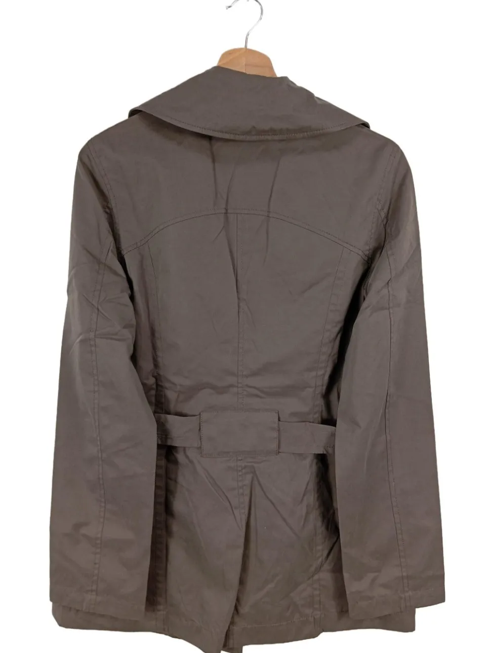 - V-Ausschnitt, Umlegekragen, Bund am Ärmelsaum, Knopfverschluss, Eingriffstaschen, Leistentaschen, Casual-Look, klassischer Stil
