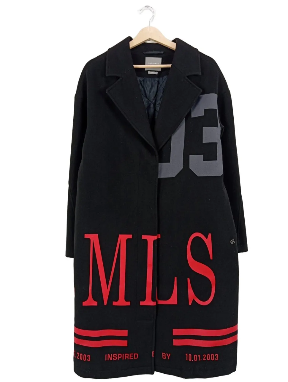 - Elias Rumelis Übergangsmantel, schwarz Allover-Druck