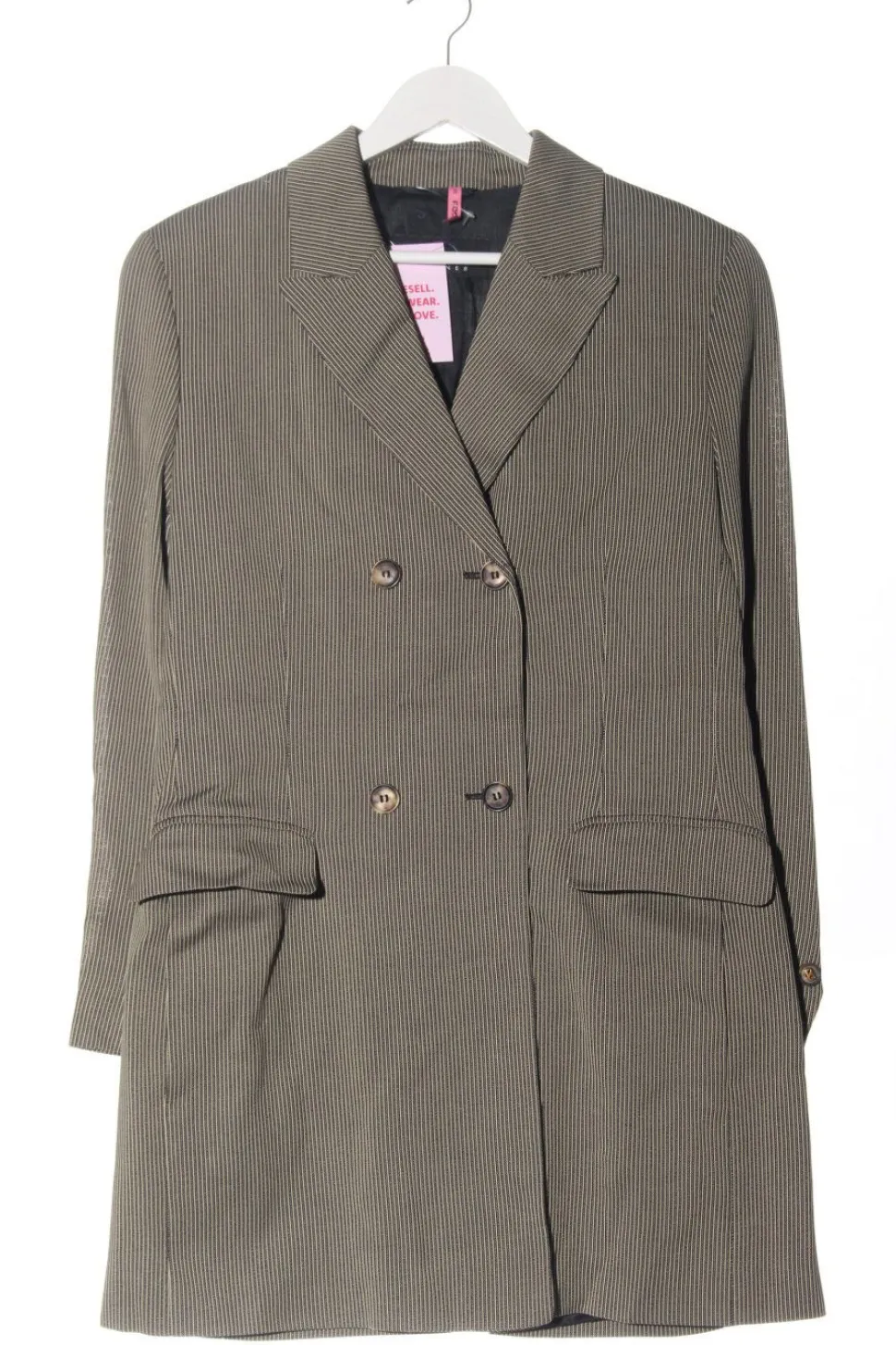- Umlegekragen, Schlitz am Ärmelsaum, doppelreihiger Knopfverschluss, Knopfverschluss, Pattentaschen, Streifenmuster, Business-Look, Elegant, klassischer Stil