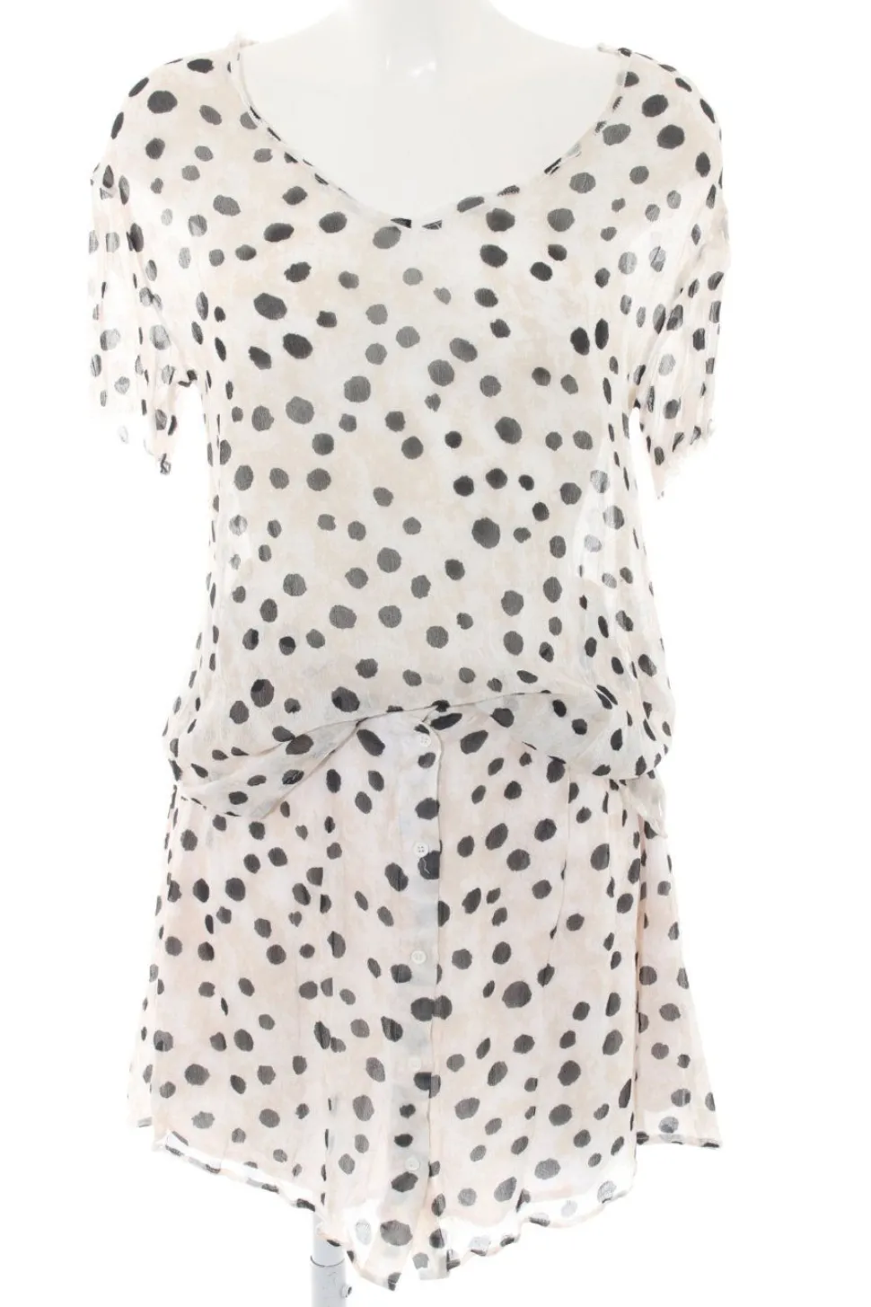 - U-Ausschnitt, Bund am Ärmelsaum, Knopfverschluss, Allover-Druck, Punktemuster, Casual-Look, Elegant, Street-Fashion-Look