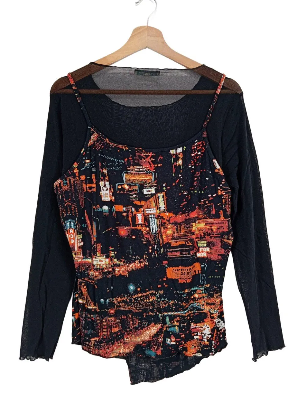 - Jacqueline Riu Web Twin Set, schwarz-rot Allover-Druck
