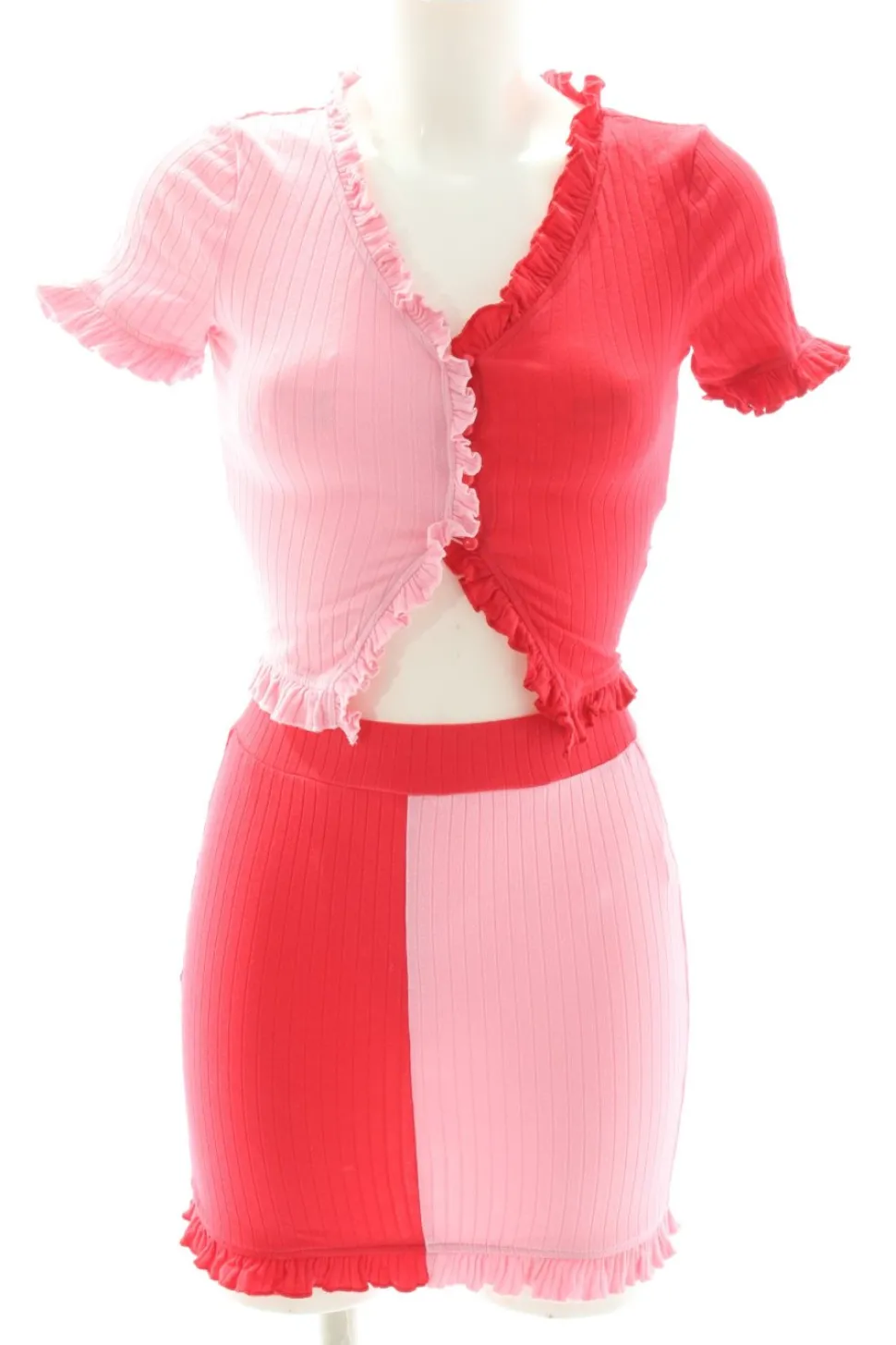 - V-Ausschnitt, Rüschenkragen, Rüschen am Ärmelsaum, Elegant