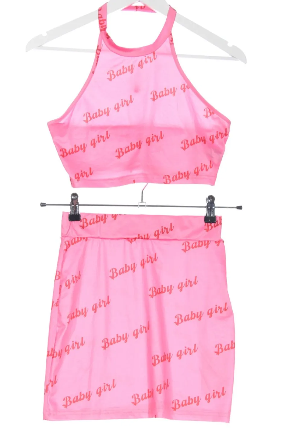 - SheIn Web Twin Set, pink-rot Allover-Druck
