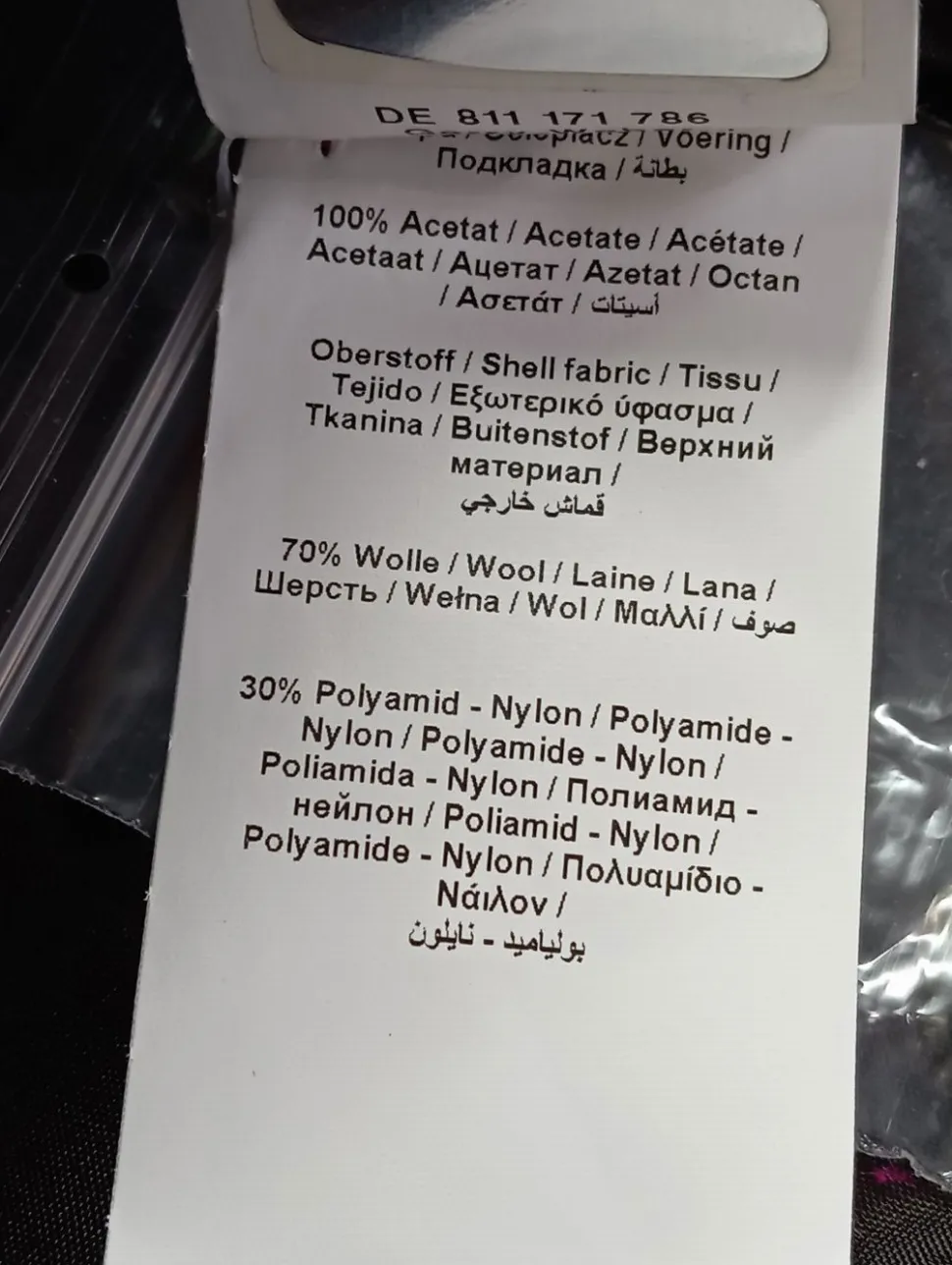 - Außenmaterial: 70% Wolle, 30% Polyamid