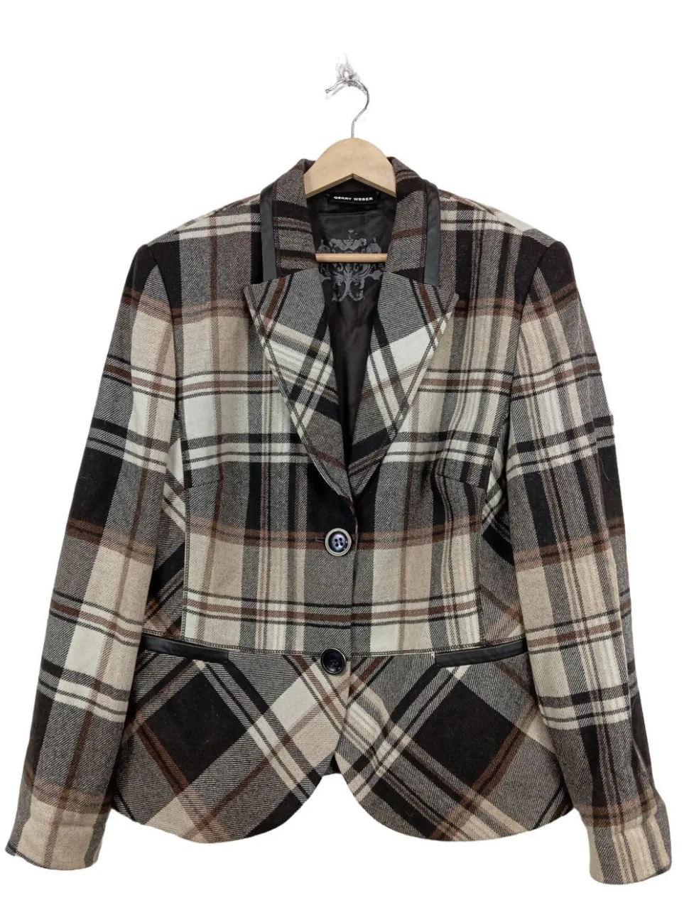 - Gerry Weber Woll-Blazer, hellgrau Karomuster